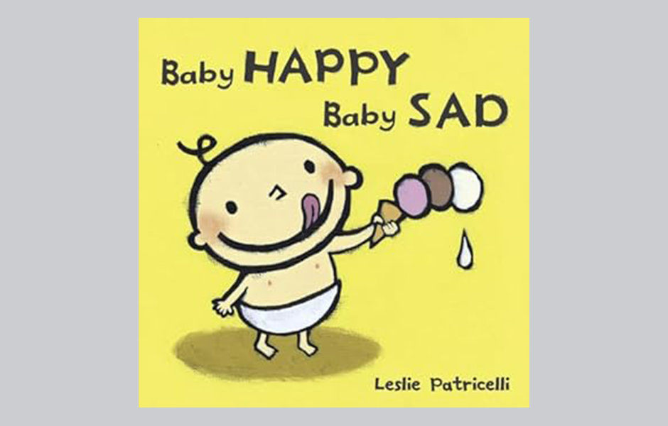 Place your baby in his carrier or stroller and show him the front cover of the book. Show him the picture of the baby on the front cover. You might describe: